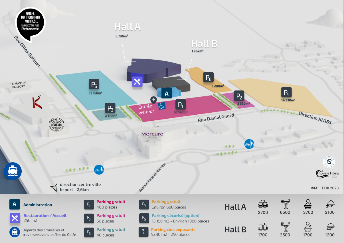 - Le Parc des Expositions CHORUS-Vannes avec plus de 5500m² d'espace d'exposition réparties sur 2 halls et pouvant accueillir jusqu'à 3 700 personnes assises et 8280m2 d'espace extérieur.