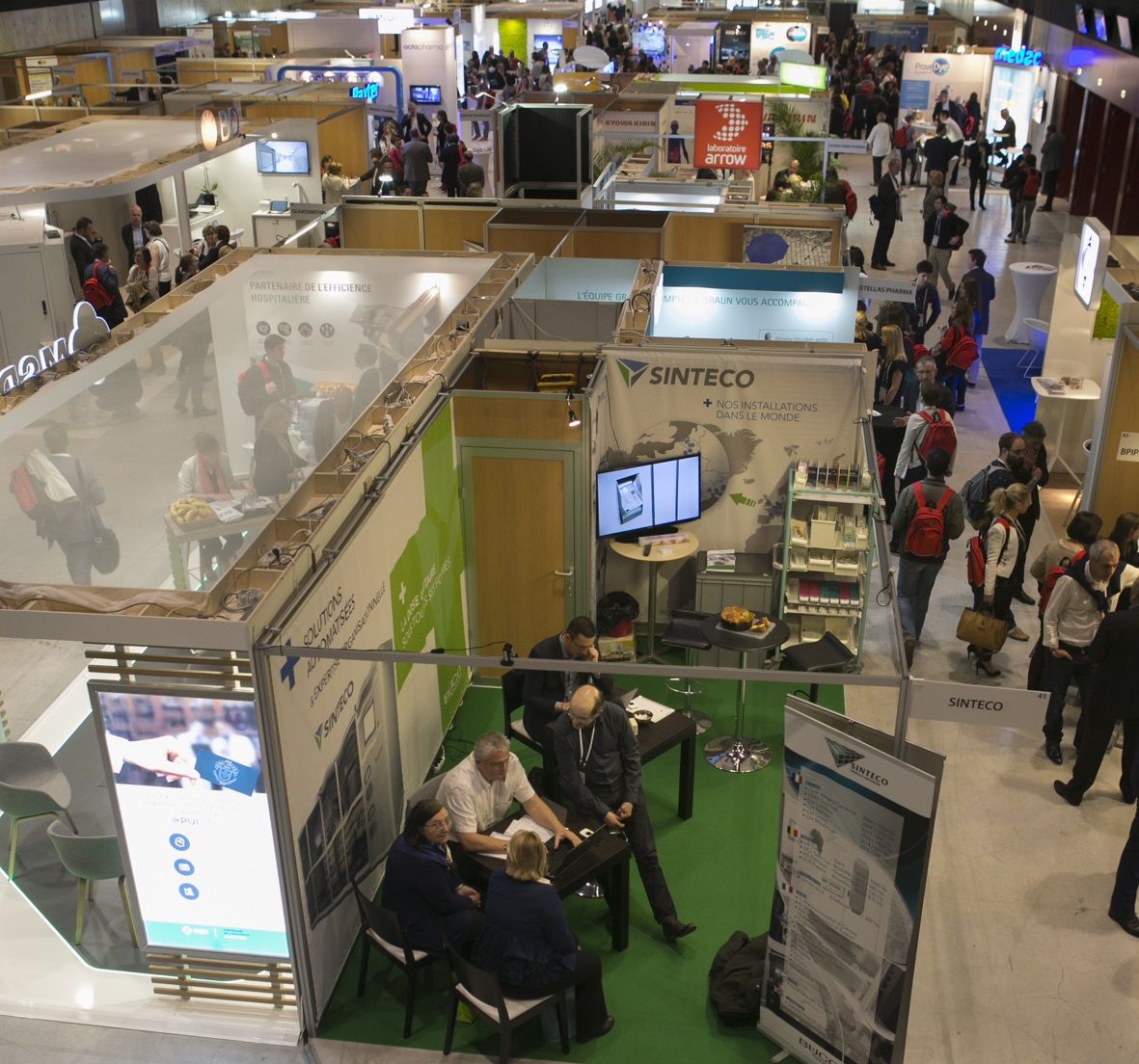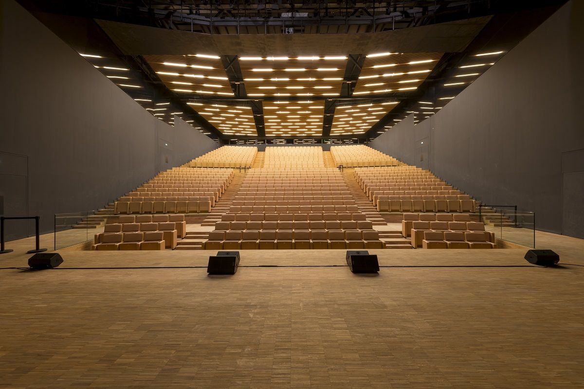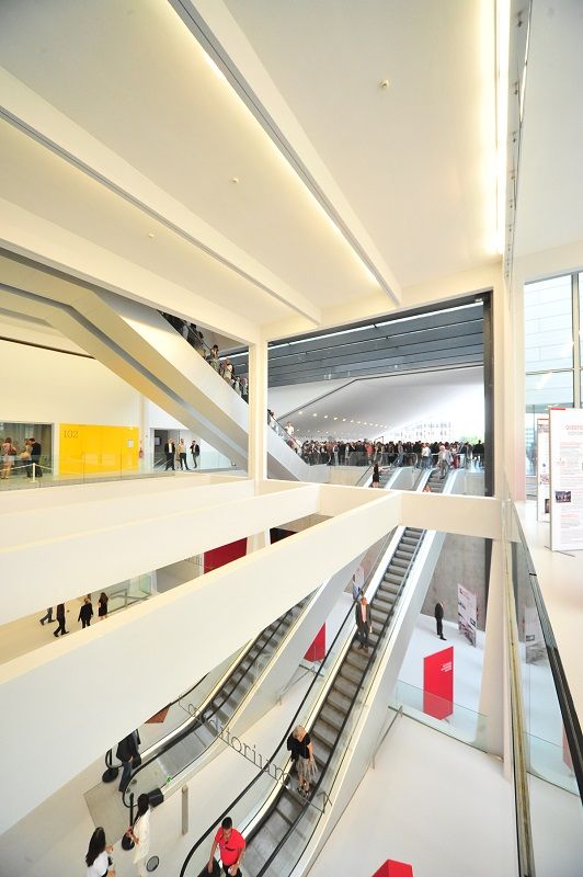 Au rez-de-chaussée, un hall d’exposition offre la possibilité d’accueillir salons et expositions sur une surface totale de 3000m2 divisible en 600, 1200 ou 2400 m2 en hyper centre-ville. Avec une aire logistique intégrée, il propose 2 auditoriums (850 et 300 fauteuils en cuir), 13 salles de réunion équipées de cabines de traduction simultanée, un espace réceptif panoramique et modulable jusqu’à 1200 couverts servis par 4 laboratoires traiteurs, et un parking public en sous-sol de 455 places.