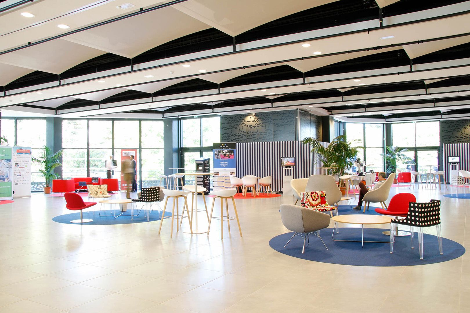 Une offre multimédia de pointe : fibre optique, écrans d’affichage dynamique, applications digitales interactives, info décor, visio-conférence, streaming, plateau caméra, traduction simultanée, sonorisation haute qualité, écran led sur mur d’image de 150 m² ...