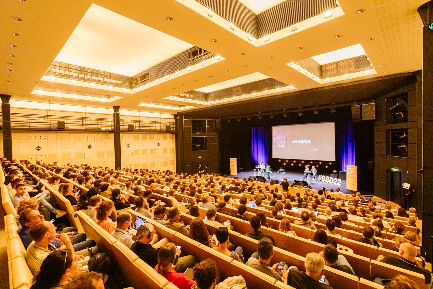 - un amphithéâtre de 410 places offrant confort et acoustique parfaits. Une régie audio-vidéo, des cabines de traduction simultanée et tous les équipements nécessaires aux séances de projection complètent ce dispositif à la pointe de la technologie